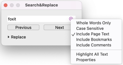 Note: The settings above apply to the current index only. To apply these settings to all indexes, please do the settings in the File tab (or Foxit PDF Editor in the menu bar) > Preferences > Index.