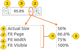 Page indicator: Shows the current page and the total number of pages of the opened PDF file. You can input the page number and press Enter to jump to the page specified.
